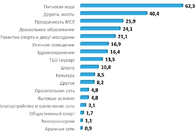 Анализ также показывает, что совместный характер планирования влияет на приоритетность проблем, включаемых в планы. Например, вопросы доступа к дошкольному образованию, нехватки питьевой воды, медицинского обслуживания, доступа к бюджетной информации в 2016 году по сравнению 2015 годом стали менее актуальными, так как в той или иной мере нашли свое решение благодаря совместной работе. В то же время у сообществ появились новые приоритетные проблемы: пастбища, подтопление, кладбища, автостоянки и т. д.