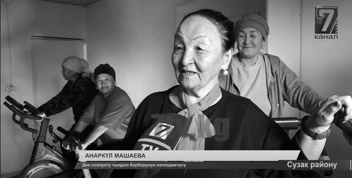 Чачыкей АБСАЛИЕВА, жительница села Октябрь: «Благодаря спортивным коврикам, нам стало комфортно тренироваться – колени больше не болят и не скользят».