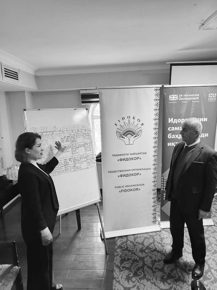 Дальше участники перешли к данным и учету, которые обычно и определяют качество планирования местного развития. В программе отдельным блоком стоял анализ доступности статистических и экономических данных, обсуждение того, какие сведения джамоат собирает, каких данных не хватает для планирования и какими способами изучается мнение населения, включая опросы, фокус-группы и работу с жалобами.